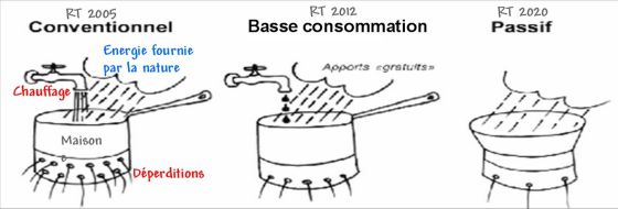 RT= Règlementation thermique, la date qui suit est celle de l'application de la réglementation