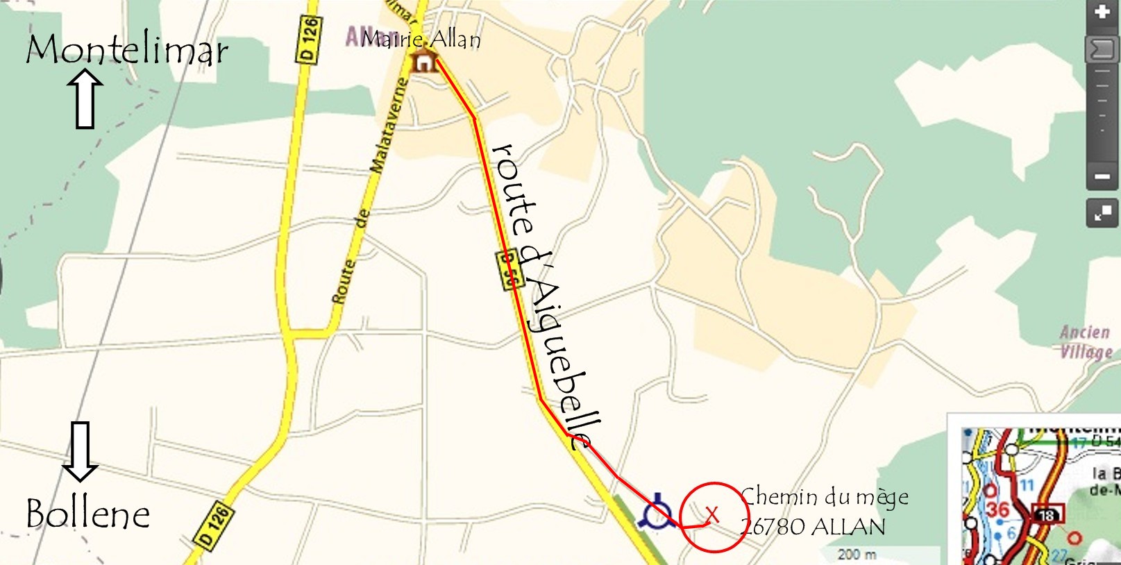 Plan de situation dans le village
